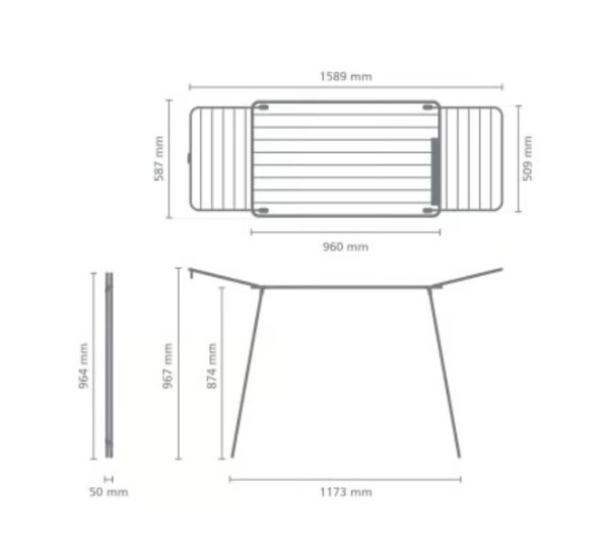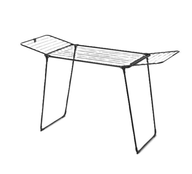 Baigus džiovinti, rėmas lengvai susilanksto iki plokščios formos, todėl patogu laikyti. Transportavimo fiksatorius ne tik laiko sparnus uždarytus, bet ir veikia kaip pakabų kabliukas.