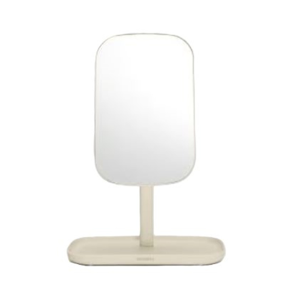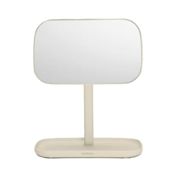 Veidrodis su stovu Brabantia ReNew, smėlio spalvos Koks grožis – Brabantia ReNew veidrodis su laikymo padėklu! Veidrodis visiškai reguliuojamas, todėl galite jį pasukti bet kokiu kampu – idealus rytinei makiažo ar skutimosi rutinai. Laikymo padėklas padeda tvarkingai laikyti smulkmenas, makiažo priemones ar papuošalus. Tikras jūsų stiliaus atspindys!