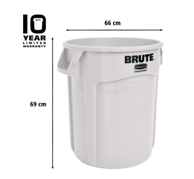 Konteineris Brute, baltas, 121,1lProfesionalų pasitikėjimą pelnę dėl savo ilgaamžiško patikimumo ir parduodami su 10 metų gamintojo garantija nuo įprasto nusidėvėjimo, „Rubbermaid“ BRUTE konteineriai įrodė, kad tarnauja ilgiau ir veiksmingiau nei kiti atliekų konteineriai. Pagaminti iš aukštos kokybės, patvaraus polietileno ir turintys integruotus ventiliacijos kanalus, BRUTE konteineriai atlaiko net ir intensyviausią naudojimą bei sumažina darbuotojų traumų riziką, nes jėga, reikalinga maišams išimti, sumažinama iki 50 %.
