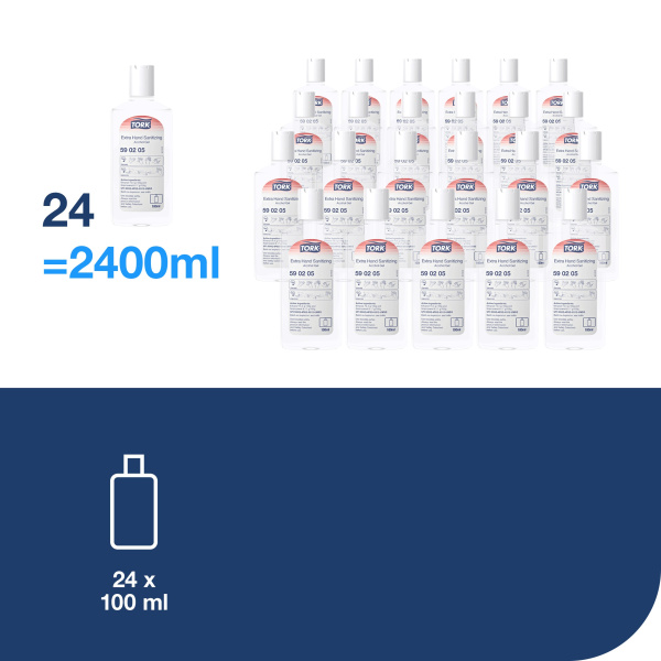 Rankų dezinfekantas, Tork Extra Premium Alcohol Gel Hand Sanitizer, 100ml - veiksmingai naikina mikroorganizmus, užkirsdamas kelią infekcijų plitimui. Veiksmingiausias „Tork“ asortimento gelis, apsaugantis nuo bakterijų, mielių ir visų virusų. Puikiai tinka kasdienei rankų higienai. Tinka naudoti sveikatos priežiūros įstaigose. Lengvas ir gaivinantis gelis ant rankų nepalieka lipnios plėvelės, patikrintas dermatologų. Tinka visiems „Tork“ muilo ir dezinfekantų dozatoriams (S4).
