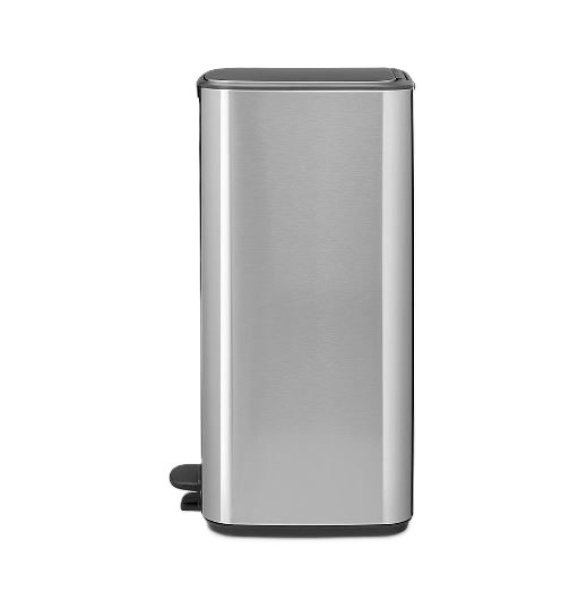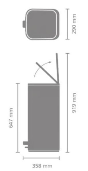 Ši siaura Brabantia Bo pedalų šiukšliadėžė (30 l) yra nepriekaištinga tiek išvaizda, tiek patogumu. Ji taupo vietą, pasižymi higienišku pedaliniu mechanizmu ir dangčiu, kuris švelniai užsidaro po naudojimo – tobula elegancija ir praktiškumas viename. Laikas valyti? Tiesiog išimkite vidinį kibirą ir perneškite dėžę už integruotos rankenos. O jei reikia ilgesniam darbui – naudokitės fiksuojama atviro dangčio funkcija, kuri leidžia lengvai keisti maišelius ar išvalyti vidų. Šis aukštas, dailus pagalbininkas puikiai priglunda prie sienos ar patogiai telpa kampe. Go for Bo!