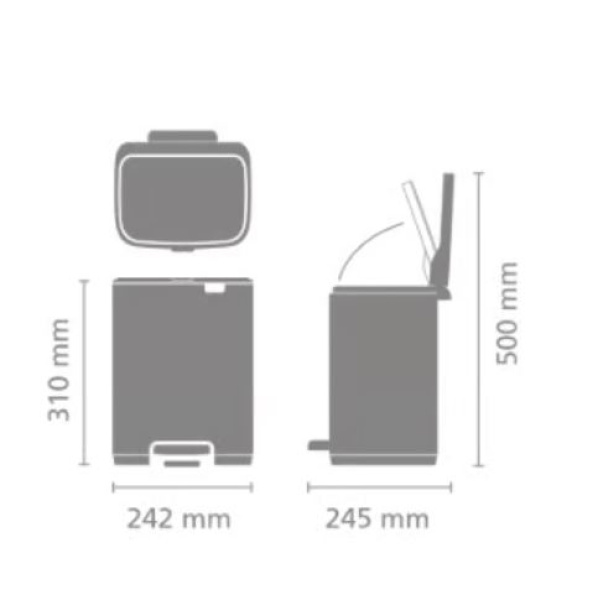 Ieškote šiukšliadėžės, kuri puikiai tiktų bet kuriame kambaryje? Tuomet Brabantia Bo Pedal Bin 7 litrų – kaip tik jums! Dėl kompaktiško, vietą taupančio dizaino ją lengvai pastatysite kampe arba prie sienos. Tvirta ir stabili konstrukcija su neslystančiu pagrindu ir nuo virtimo apsaugančiu blokatoriumi užtikrina ilgaamžiškumą. Dangtį galite atidaryti higieniškai – paspausdami pedalą arba ranka, naudojant dangčio kraštelį. Patogi „stay-open“ funkcija leidžia lengvai pakeisti šiukšlių maišelį. Tai šiukšliadėžė, kuri tikrai „laimi“!