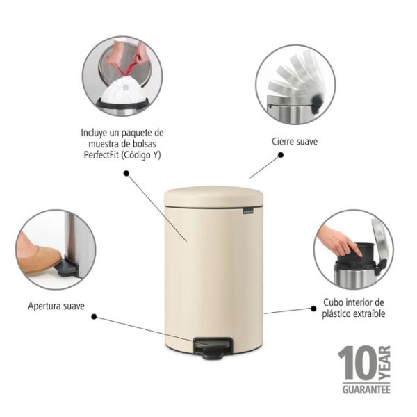 Šiukšlių dėžė atidaroma koja Brabantia NewIcon, smėlio spalvos, 20l, 149948