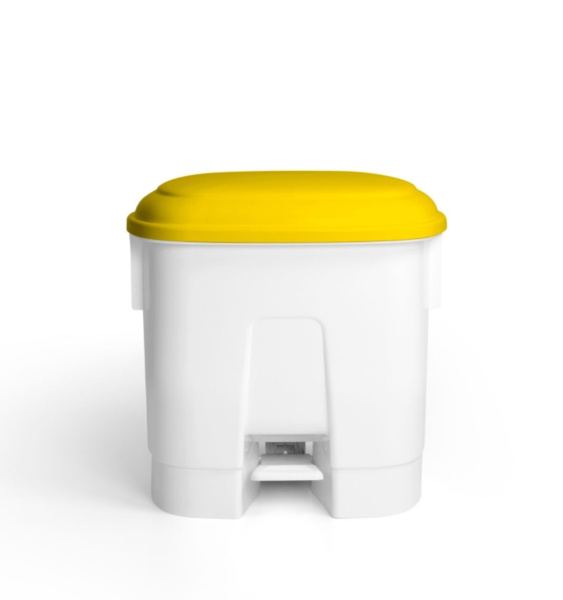Šiukšlių dėžė atidaroma koja Derby, geltonu dangčiu, 30l - su pedalu ir dangčiu, su kvapus neutralizuojančios kasetės vieta ir maišo tvirtinimo sistema. Idealiai tinka įvairioms aplinkoms.