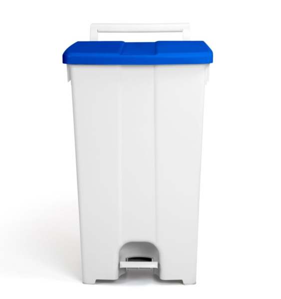 Šiukšlių dėžė atidaroma koja Derby, mėlynu dangčiu, 90l - Atliekų surinkimo šiukšlių dėžė. Konteineris su pedalu ir dangčiu, su kvapus neutralizuojančios kasetės vieta ir 100 mm ratukais. Idealiai tinka įvairioms aplinkoms.
