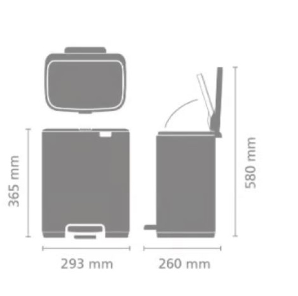 Naujiena! Labai patogus – Brabantia Bo Pedal Bin, 12 l! Pakankamai mažas, kad tilptų po stalviršiu, ir pakankamai stilingas, kad galėtumėte jį laikyti matomoje vietoje. Be to, itin praktiškas: vietą taupantis stačiakampis dizainas, higieniškas pedalinis atidarymas ir išimamas vidinis kibiras. Lėtai užsidarantis dangtis atsidaro lengvu pėdos prisilietimu, o prireikus jį galima atidaryti ir ranka, pakėlus dangčio briauną. Dar higieniškiau – dėžėje yra „stay-open“ (atidaryto dangčio) funkcija, kad būtų patogu valyti ar keisti maišelį. O dar paprasčiau – gale esanti rankena leidžia lengvai pernešti kibirą iš kambario į kambarį. Go Bo! Privalumai ir ypatybės: Taupantis vietą – S dydis (12 l).