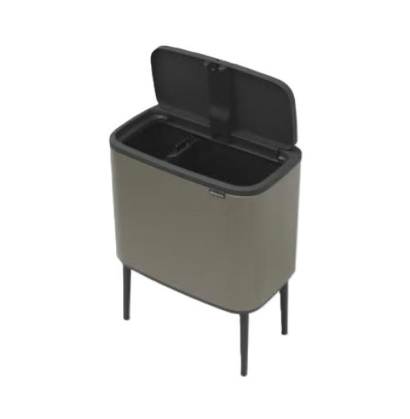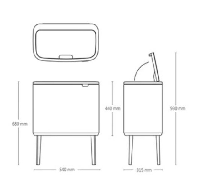 Aukštis: 68 cm Ieškote estetiško sprendimo atliekų rūšiavimui? Šis Brabantia Bo Touch Bin 23 + 11 litrų talpos modelis atrodo tarsi stilingas baldų elementas ir turi viską, ko reikia patogiam atliekų rūšiavimui. Jame yra du išimami vidiniai kibirai skirtingoms atliekoms, jis puikiai priglunda prie sienos ir yra labai stabilus dėl reguliuojamų neslystančių kojelių. Švelnaus prisilietimo dangtis leidžia lengvai ir tyliai atidaryti vienu rankos prisilietimu. Rūšiuokite stilingai!