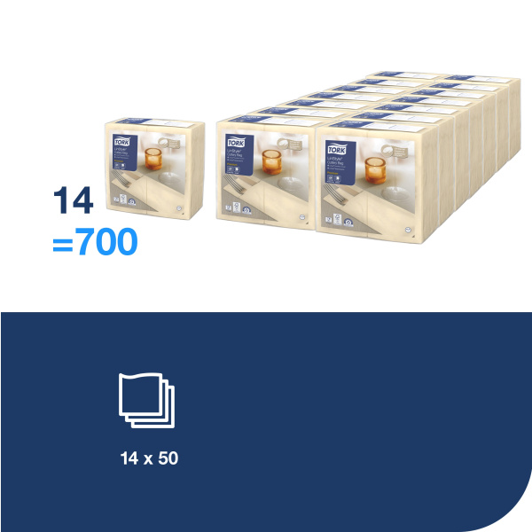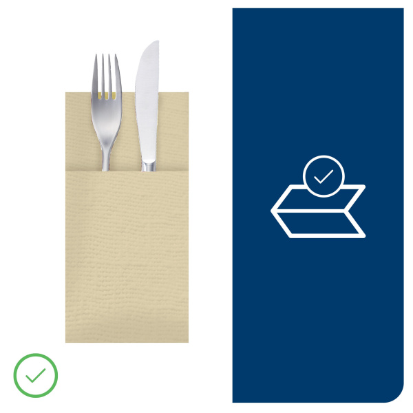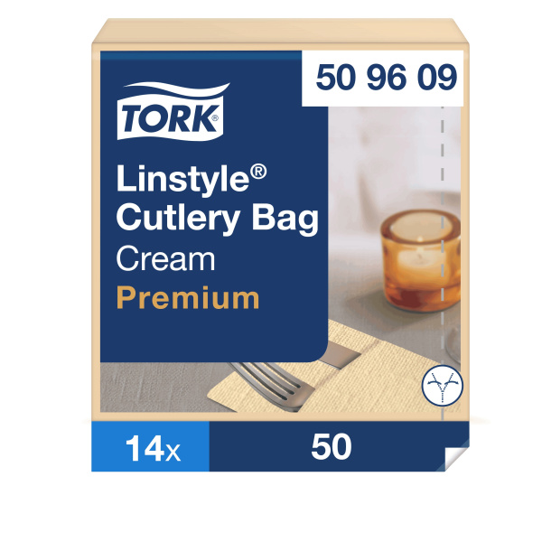 Naujiena! Stalo įrankių vokeliai-servetėlės Tork LinStyle skirti restoranams, kur ypač svarbi svečių aptarnavimo kokybė. Jie dailiai sulankstyti taip, kad stalo įrankius būtų galima padėti greitai ir elegantiškai, be to, juos galima naudoti kaip servetėles. - Vokeliai-servetėlės, 1 sluoksnio, kreminės spalvos;- Vokelių-servetėlių skaičius: 50vnt.; - Sulankstyto vokelio-servetėlės dydis: 19,5x9,8cm;- Išlankstyto vokelio-servetėlės dydis: 39x39cm; - Aukščiausios kokybės, itin minkšti ir stilingi, tarsi iš lininio audinio; - Patogūs ir elegantiški; - Gerokai minkštesni ir storesni nei įprastos popierinės servetėlės; - Puikiai sugeriantys drėgmę; - Turi sąlyčio su maistu sertifikatą.