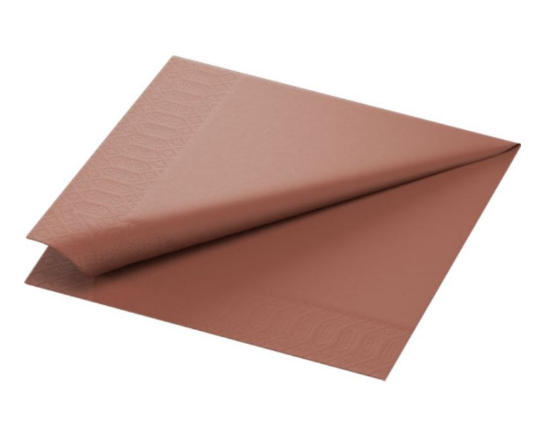 Naujiena! Stalo servetėlės Duni Ecoecho 40x40cm, 2sl. pop., rudos,125vnt. Siūlomos sodrių vienspalvių atspalvių paletėje ir dekoruotos reljefiniu krašteliu, mūsų kompostuojamos dviejų sluoksnių popierinės servetėlės – tai paprastas ir ekonomiškas būdas sukurti jaukią atmosferą kasdieniams, neformaliems pietums.