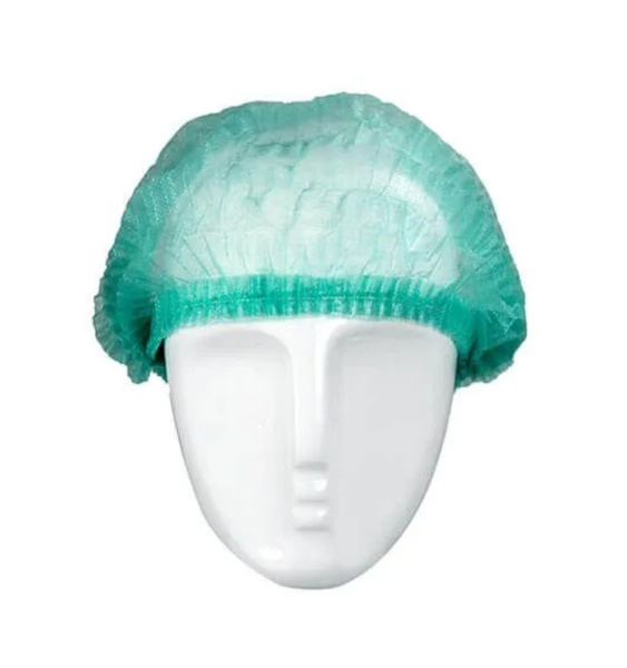 Vienkartinės gofruotos kepuraitės, PP, žalios, dydis 53cm, 100vnt - apsaugai nuo plaukų patekimo ten, kur nereikia.